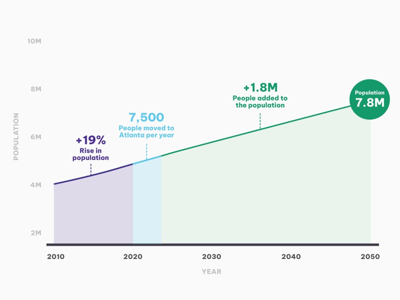 Atlanta is growing very quickly and we must plan for the future. Between 2020 and 2050, the 21-county Atlanta region is expected to welcome 1.8 million new residents. Fulton County is expected to account for 16% of the region’s 2050 population, with current forecasts predicting that 1.26 million people will call Fulton home. This is an increase of nearly 200,000 residents, compared to 2020, and all of these new residents will need affordable, accessible transportation. Investing in projects like Beltline transit will reconnect our neighborhoods and provide our children with an Atlanta that can thrive for decades to come.