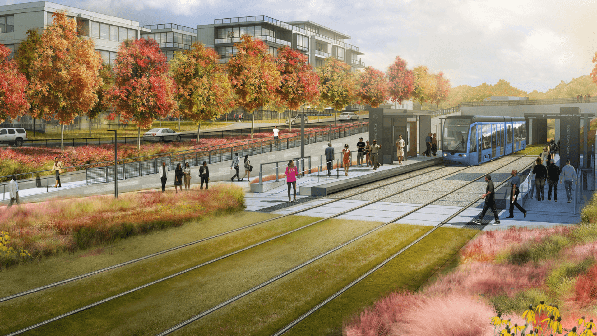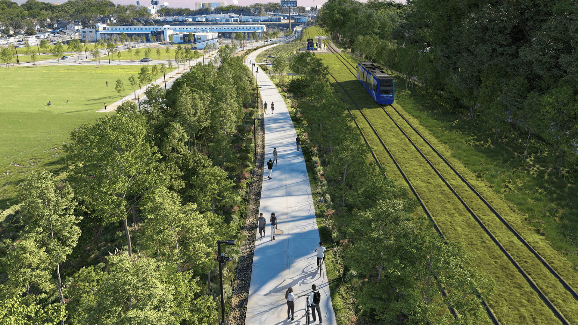 Transit rendering of the Southside Trail at Pittsburgh Yards (Photo Credit: Kimley-Horn)