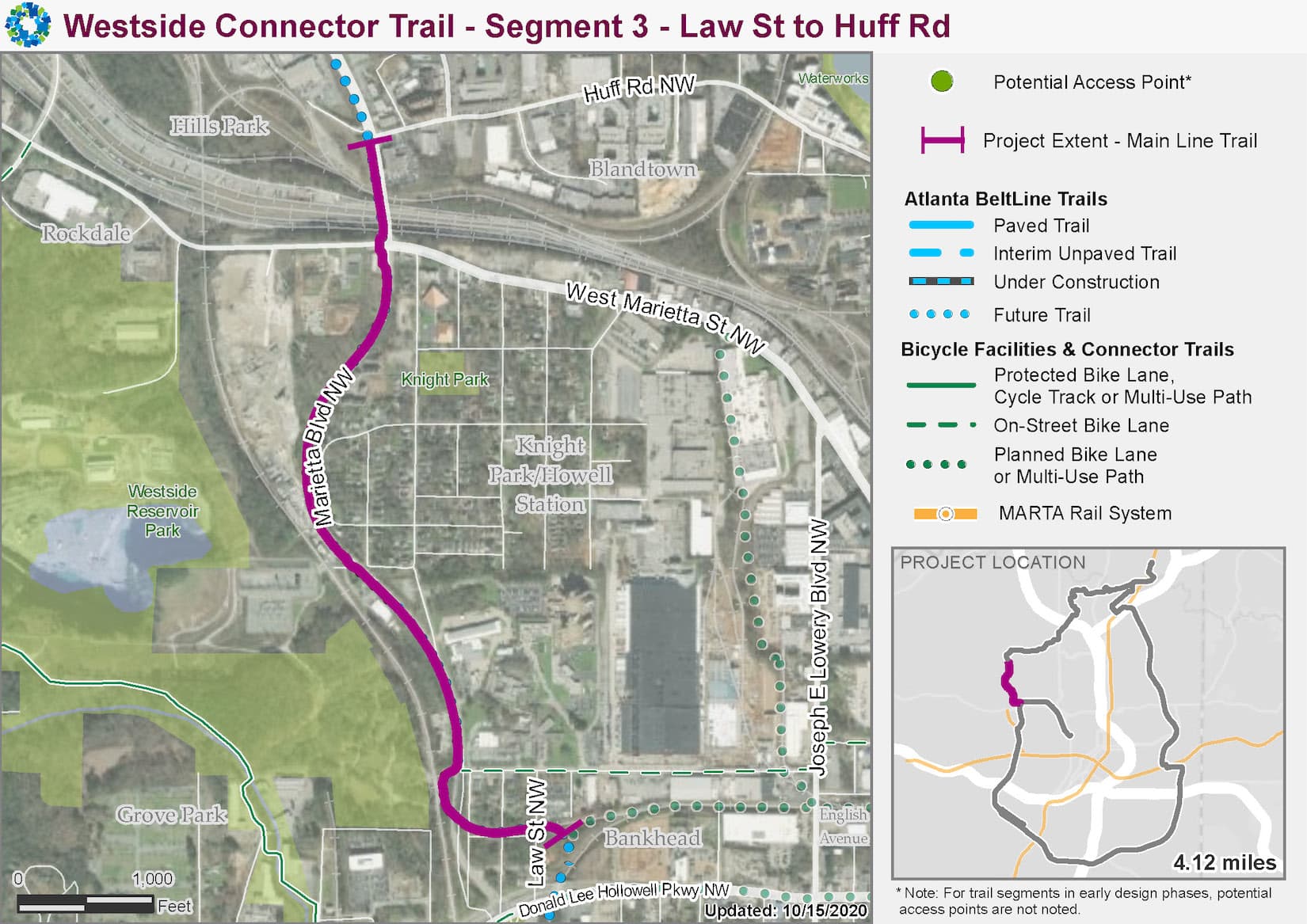 Westside Trail – Segment 3 is mainline Beltline trail and runs 1.22 miles from Law Street to Huff Road and include the use of right-of-way along Marietta Boulevard and the...
