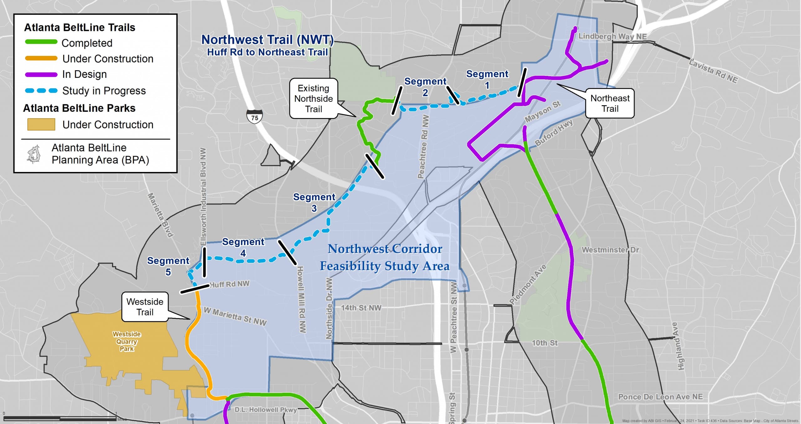 Atlanta Beltline Northwest Trail and corridor feasibility study area map