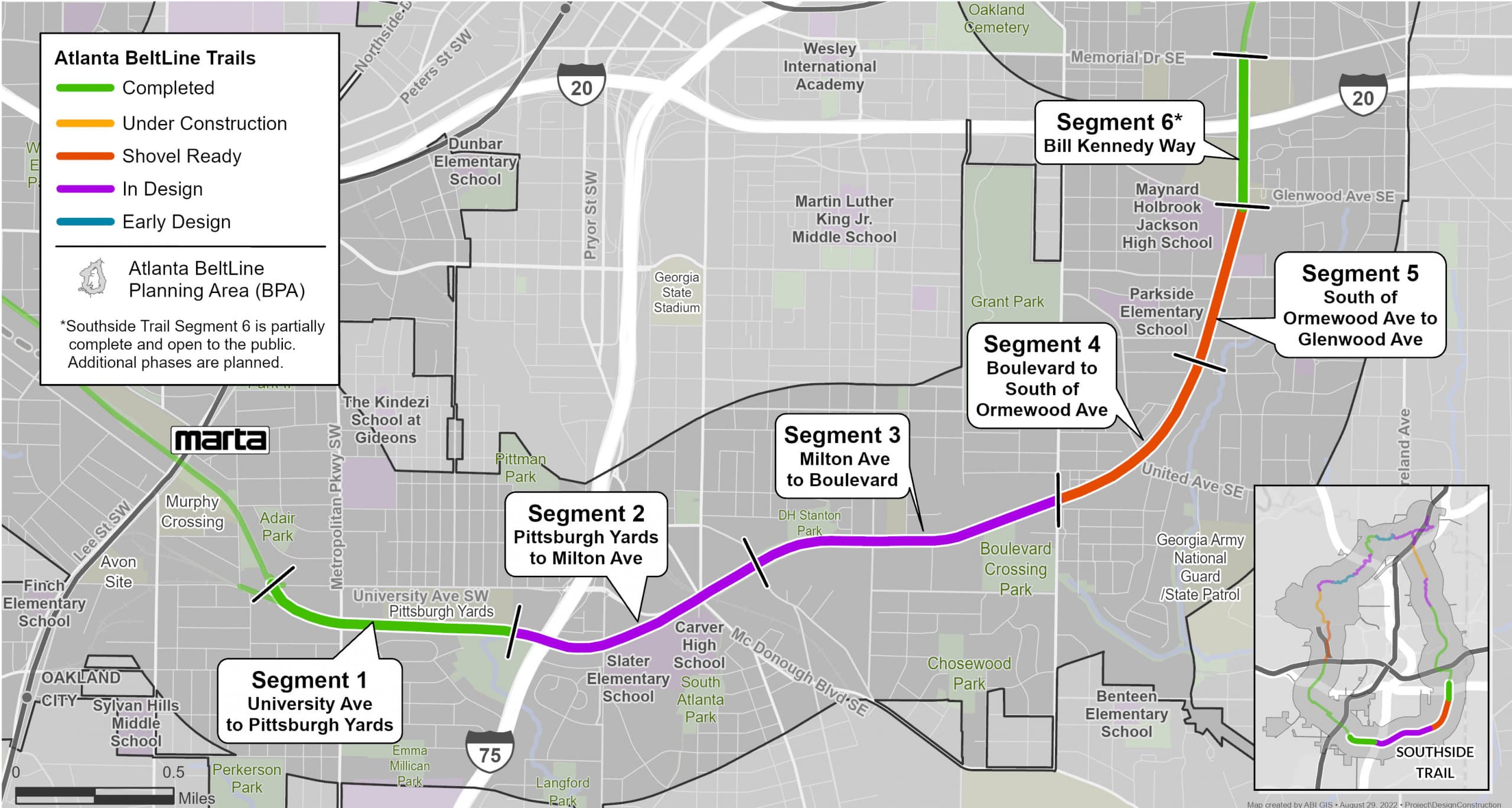 Southside Trail design and construction status as of September 2022.