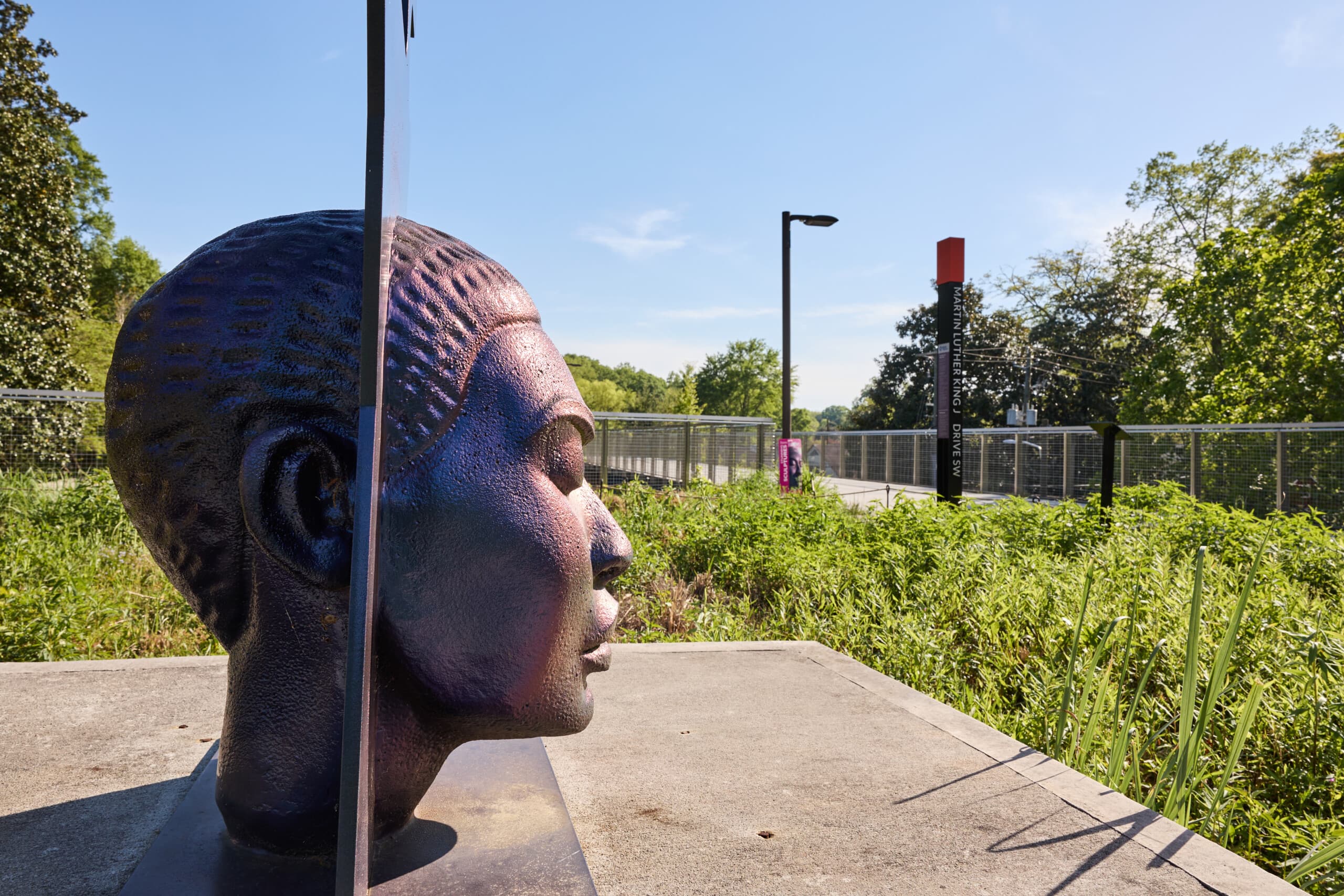 One in All by Grace Kisa and Ellex Swavoni on the Westside Trail. The piece was one of Kisa and Swavoni’s first public art sculptures, having primarily been gallery artists previously.