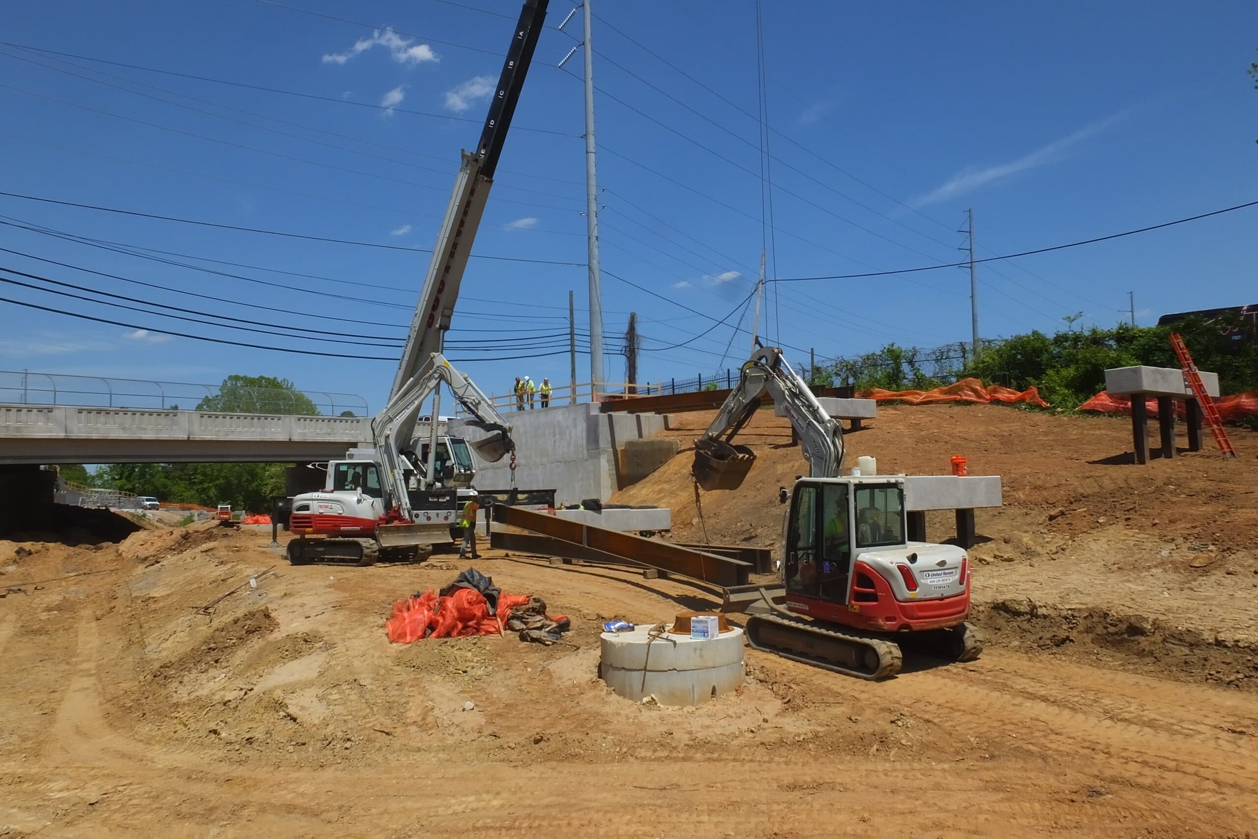 Installation of beams for a ramp that will provide access to Donald Lee Holloway Parkway NW. Photo taken 04/25/2024. Photo by Kerri Parker.