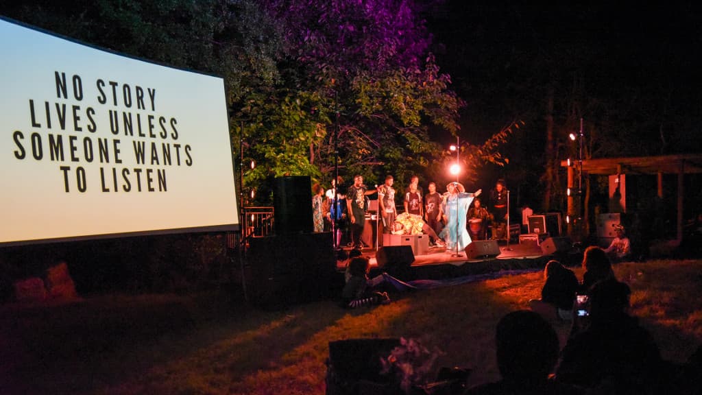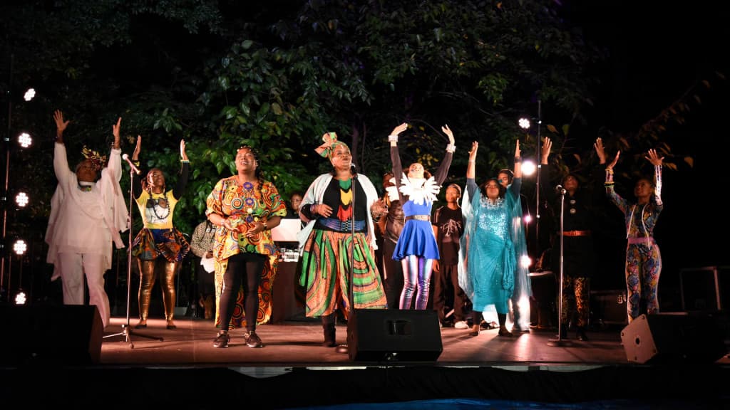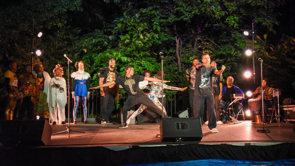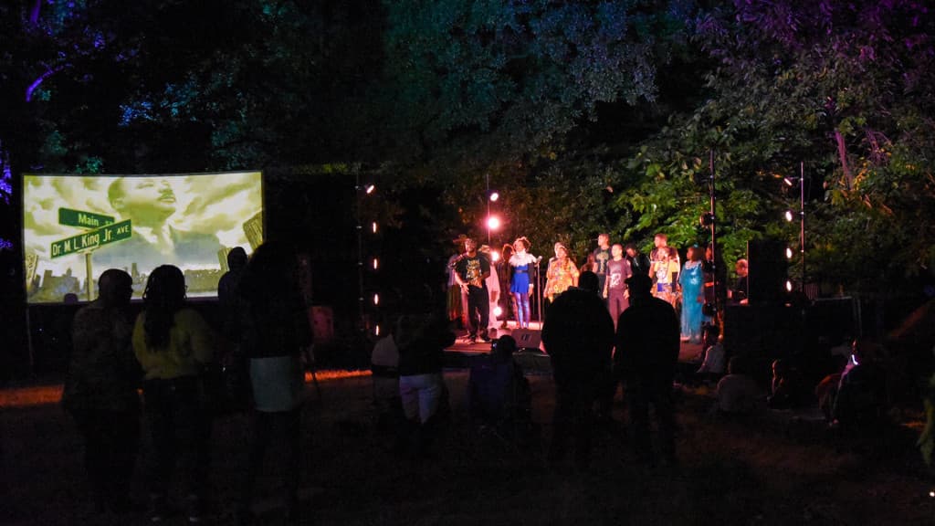 Songs for Adaeze is an Afro Futurism Musical Production. Adaeze is a unique coming of age story rooted in folklore from West Africa and the Diaspora with an eclectic sci fi twist and an amazing palate of thought provoking musical numbers. A chance encounter with a mysterious and alluring individual from another dimension, challenges a young woman from a Royal legacy to defy the status quo resulting in a chain of events that that can destroy or revitalize the world she has come to love and cherish as her own. Adaeze’s journey is a quest for love, redemption, self awareness and salvation. This charismatic odyssey will lure the audience into an enchanting moment in time spanning two dimensions co existing and co depending on each other. It will challenge how one sees their own purpose and the impact that human existence serves when merged with clarity of self defined. Adaeze’s song spans beyond age, gender, and class. It embraces the magnificence of blackness. The vulnerability, the strength, the resiliency and the brilliance of a community that illuminates brilliance on an inter galactic realm that is archived in the history of mankind and the possibilities of all things great and yet to come by a future that is limitless. This piece was performed as part of Beltline After Dark + Music in the Park on October 18, 2019, in the greenspace in Ashview Heights and adjacent to the Westside Trail.