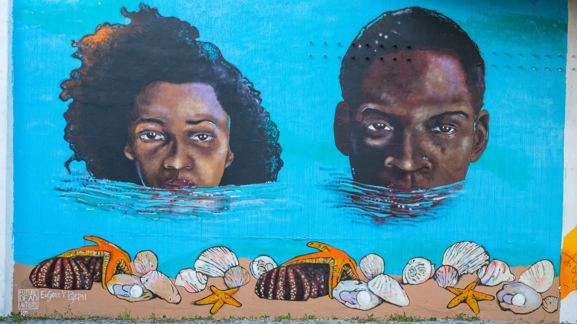 An address to those times it may feel as if we barely have our heads above water and the pressure of life can make us feel as if we’re drowning. A reminder for us to stay strong and weather the storm. In those moments we happen to feel completely under water- there’s valuable lessons and beauty below the surface. This mural was painted as part of Beltline Walls, Vol. 2 and festival on August 4, 2019 on the interim Northeast Trail where it passes under I-85.