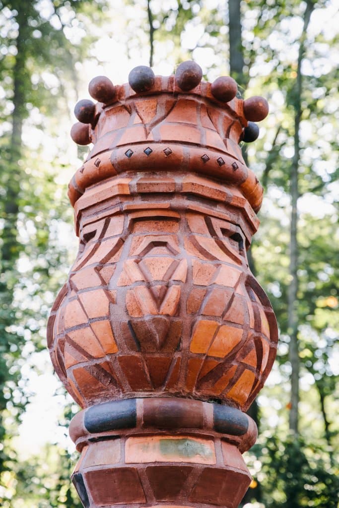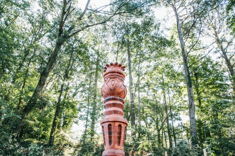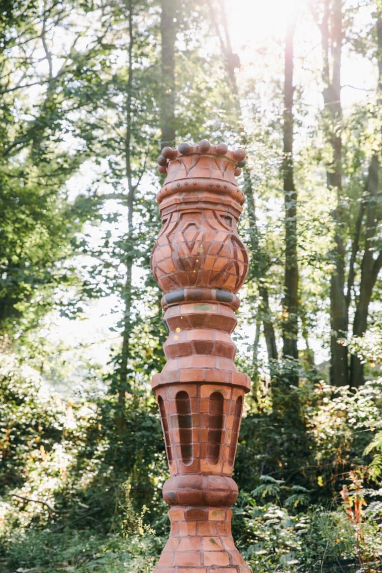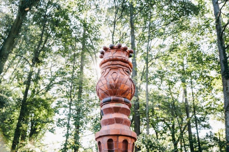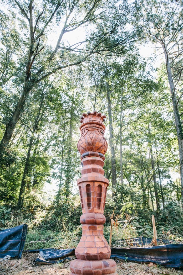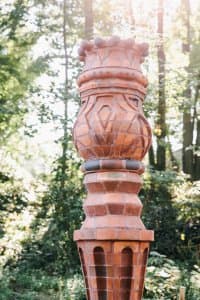 This work experiments with pushing the boundaries of form with brick. The concept is inspired by a small antique candleholder that we thought would make a beautiful large-scale column. Brick as a material is seldom altered in this way. Therefore, making this work very unique and a real challenge for us the makers. The work stands around 9+ feet in height and almost 2 feet in width. We enjoy brick for its tactile and durable nature, and low maintenance abilities. Also, the firing creates variation in the surface of each brick making the surface that much more fun to explore.