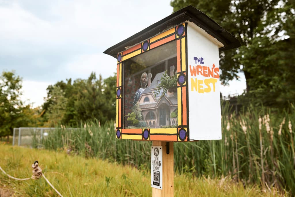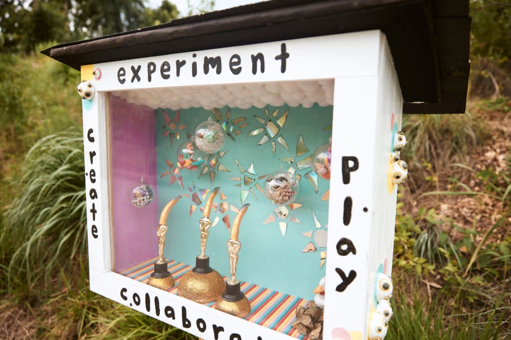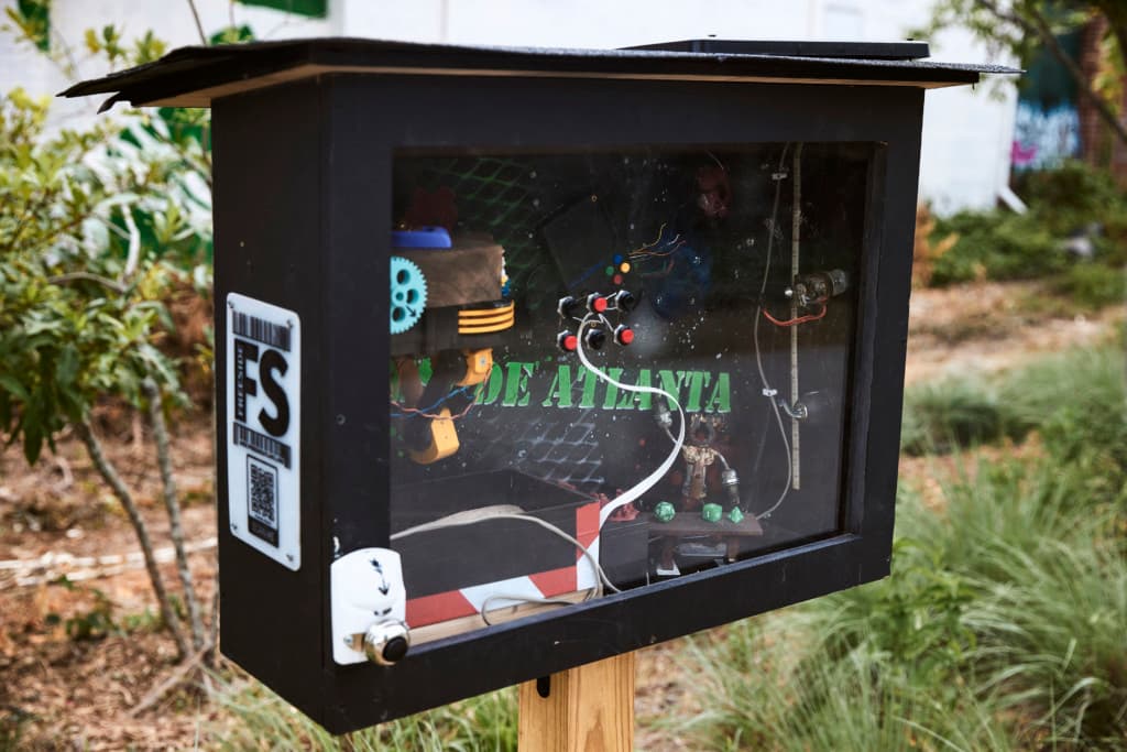 Camaraderie: A Beltline Box Project aims to connect patrons of the Westside Trail with diverse community organizations who have continued to provide services to the community throughout ongoing the struggles of Covid-19 through a series of narrative outdoor sculptures housed in handmade wooden boxes. Each box shares the viewpoint of a grassroots or community group who have made it their mission to keep those they serve connected with each other and the community throughout the rampant loneliness and unrest of 2020. While many in our community have remained safely behind closed doors throughout the past year, these organizations have created virtual programming, socially safe gatherings, and created previously unheard-of ways to keep our creative energy afloat or connect those in need with much needed physical resources. This installation shines a light on those who continue to strive for equity and inclusion within our arts community and beyond while providing a safe way to view works of public art. Patrons of this installation may use a smartphone to scan the QR code accompanying each Beltline Box to learn more about each of our participating organizations. Thank you to our partner organizations: The Bakery, Lifecycle Building Center, re:imagine/ATL, Southern Fried Queer Pride, the Wren’s Nest, Feminist Women’s Health Center, and to Freeside Atlanta for creating Beltline Boxes for this exhibition. Watch Elisabeth Herrera-Very share about her residency and present her exhibition: https://www.youtube.com/watch?v=EHdztFKE-sI