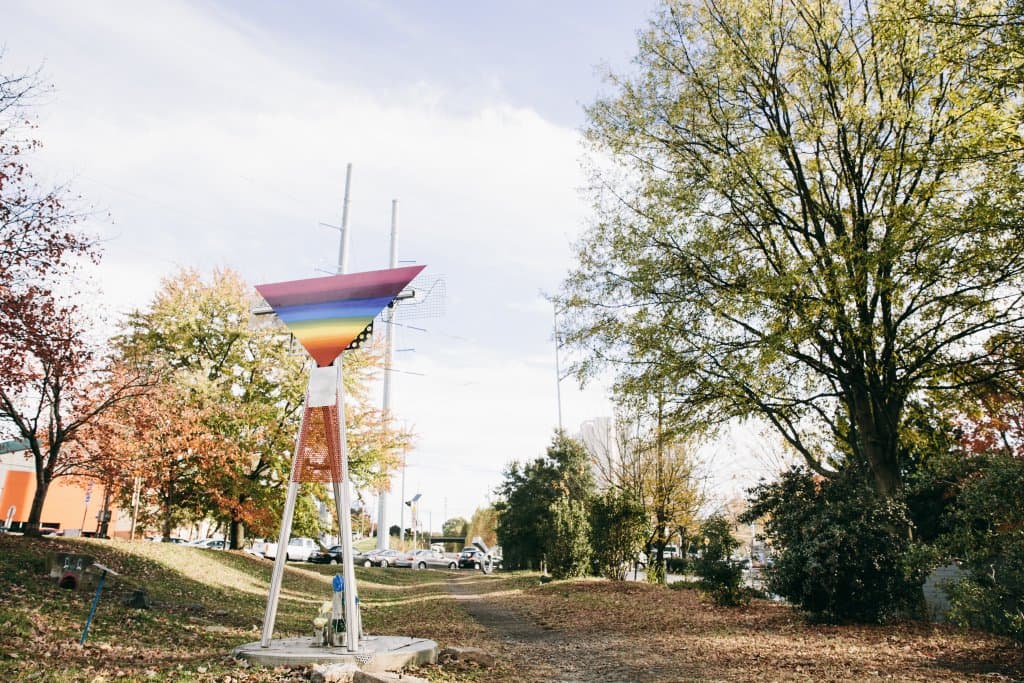 I have created outdoor sculpture for Art in Public Places, and several private collections. I have taught Art at the college level for about eight years, have a Bachelor of Fine Art degree, and many years of exhibiting art widely. My area of special focus in outdoor sculpture is the creation of sundials, ancient and modern-looking. They have educational impact, and are an interactive kind of feature, as they engage the passerby to notice the shadow patterns and observe the changes in documenting the time of day. The spectrum of light is a main concept in this sculpture and in my artwork. The sundial expresses the Photoelectric Effect for which Einstein won the Nobel Prize. The joys of science are of great interest when they touch on art and color, which we have tried to enliven here.