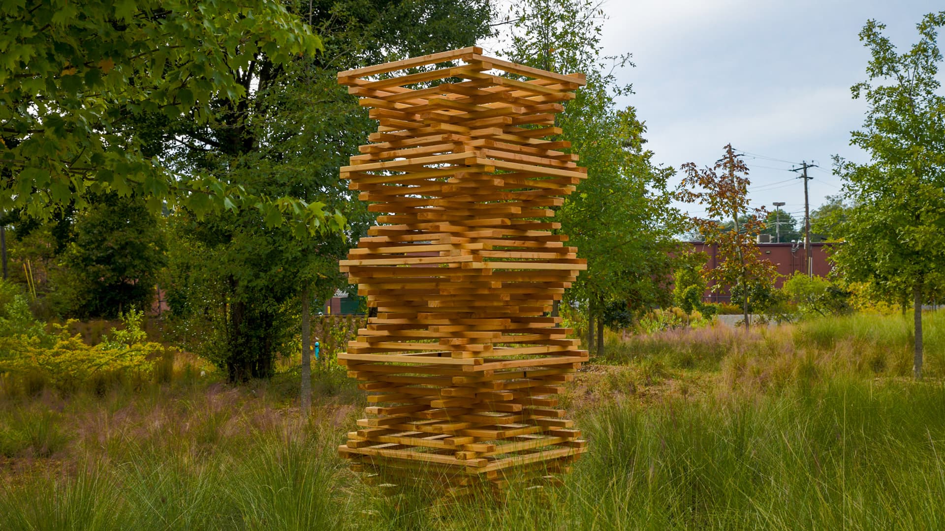 For Brancusi (basics) is part of a larger series of Basics that explore the abstracted notion of form, space, and utility in the public realm. This work is both a sculptural gesture in dialogue with its environment and an interactive spatial installation in the public realm. For Brancusi (basics) follows this series of work in its formal and constructive logic, and its intent for a “non-precious” material approach to temporary public sculpture. The installation pays formal tribute to Constantin Brancusi’s Endless Column.