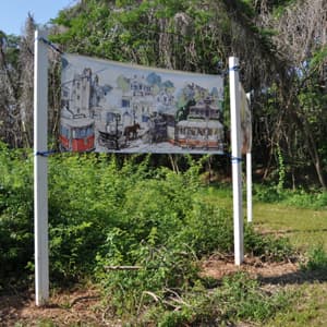 Image printing on vinyl. Vignettes of some key historical landmarks in the West End - presented on two 4' x 8' banners located near Gordon White Park.