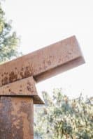 This piece is third in an ongoing series of Industrial Oafs. The Oafs reflect industrial equipment seen through the abstractions of Minimalism and Pop. Industrial Oaf: Lifting Instability is a reflection of a tower crane. These objects stand as great monoliths of many urban landscapes. They tower as marvelous feats of engineering and fabrication, standing proud in the sky. Lifting Instability plays with this concept by drastically scaling down the monumental status of a tower crane into a delicate playful size, the crane becomes approachable both physically and mentally. The parts of the crane are diluted to their basic geometric planar shapes. These shapes are skewed in a manner that disrupts their visual perspective in an effort to capture the optical distortion that happens when looking at large cranes from a close distance. This piece is constructed in a process that shows off my skill and love of crisp, clean metal fabrication. This sculpture will be constructed of A588 weathering steel. With this material the sculpture will develop even, consistent rust. The aesthetics of even consistent rust is necessary to create the value shift that happens as light dances off the different planes of this sculpture. The Oafs all portray a modern desire for exploration. As the machine objects that construct the roads and by ways of our ever-urbanizing world, they are the manufacturers of our explorative desires.