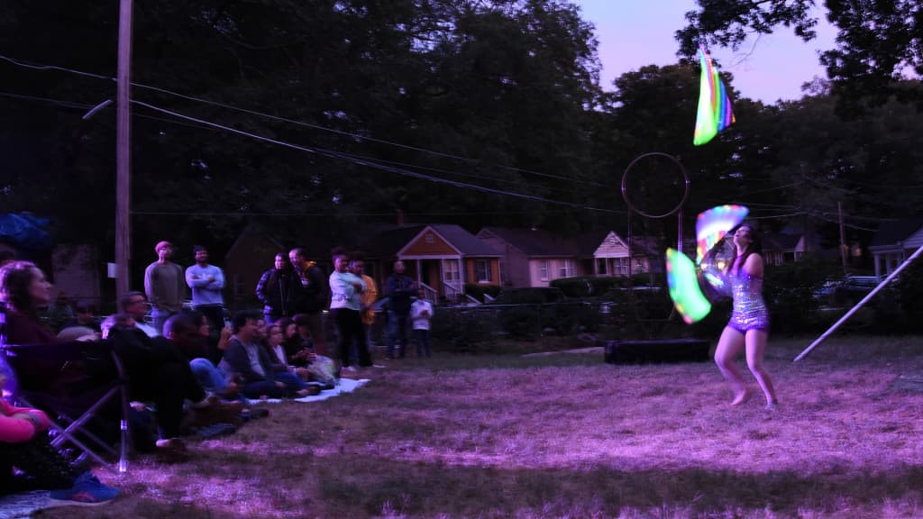 Liquid Sky brings together a variety of Atlanta’s movement, dance, and circus artists to create memorable, full-length shows. This piece was performed as part of BeltLine After Dark + Music in the Park on October 18, 2019, in the greenspace in Ashview Heights and adjacent to the Westside Trail.