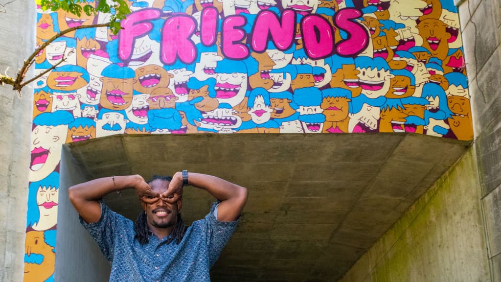 Make Friends is more than just a mural; it’s a marvelous way to create an expansive environment. It’s a way to find connections with people, places, and times that are always changing. It's a message the artist had to take to heart as he moved constantly throughout his childhood, meeting various people who didn’t look, sound, or act like him but he had community with. "Atlanta is changing. The neighborhoods are more blurred than ever before. Is it for the better? That’s solely on us individually to decide. So take a second or two today and meet someone new, not to “network”... but to Make Friends." - George F. Baker III