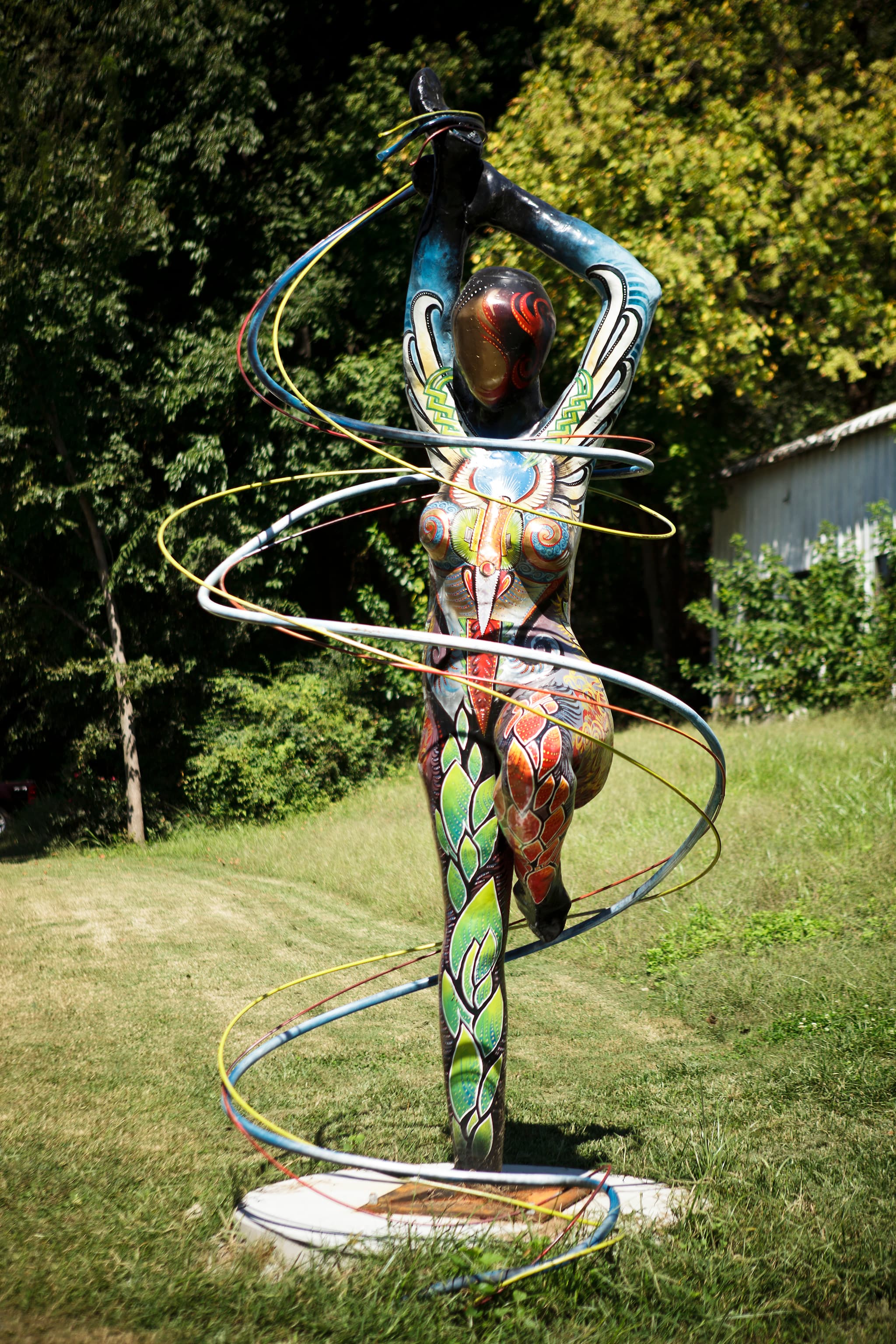Commissioned By: The Chelko Foundation Sculptor: Phil Proctor and Geo4Design Painters: Scott Fray, Madelyn Greco, Stephanie Anderson One Woman Rising project was influenced by the “One Billion Rising” global day of action and is intended to serve as a lasting monument to women and girls affected by violence. The statue depicts the grace of the feminine form rising in dance and is surrounded with a metal railing where viewers may use ribbons and markers (provided) to share their reasons for rising and other stories of empowerment and survival.
