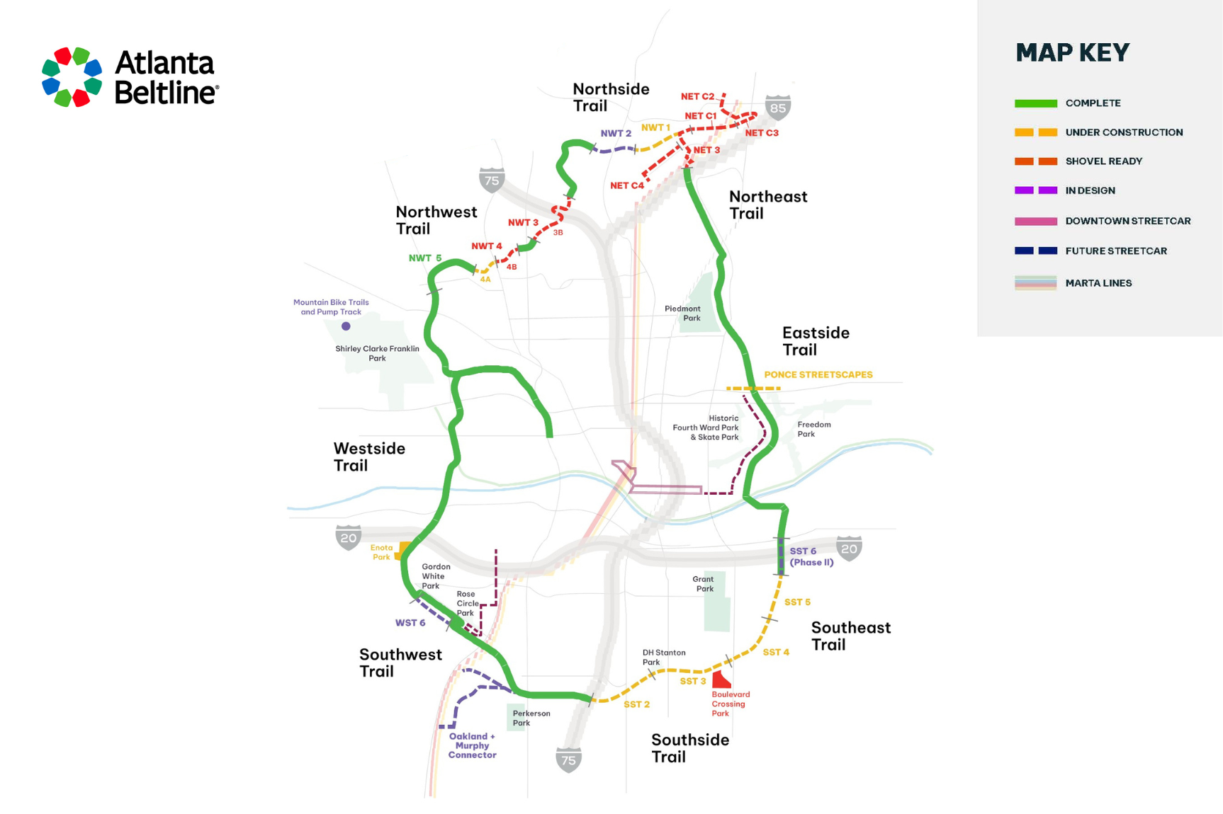 Westside Trail – Segment 6: Design for this 0.6 mile segment that connects the Westside Trail at Lawton Street SW to the Westside Trail at Ralph David Abernathy Boulevard/White St via former rail corridor has reached 30 % design. Design is expected to be completed by Spring 2026 Construction will not start until after FIFA events scheduled for June 2026. Construction is tentatively scheduled to be completed by late 2027 or early 2028.