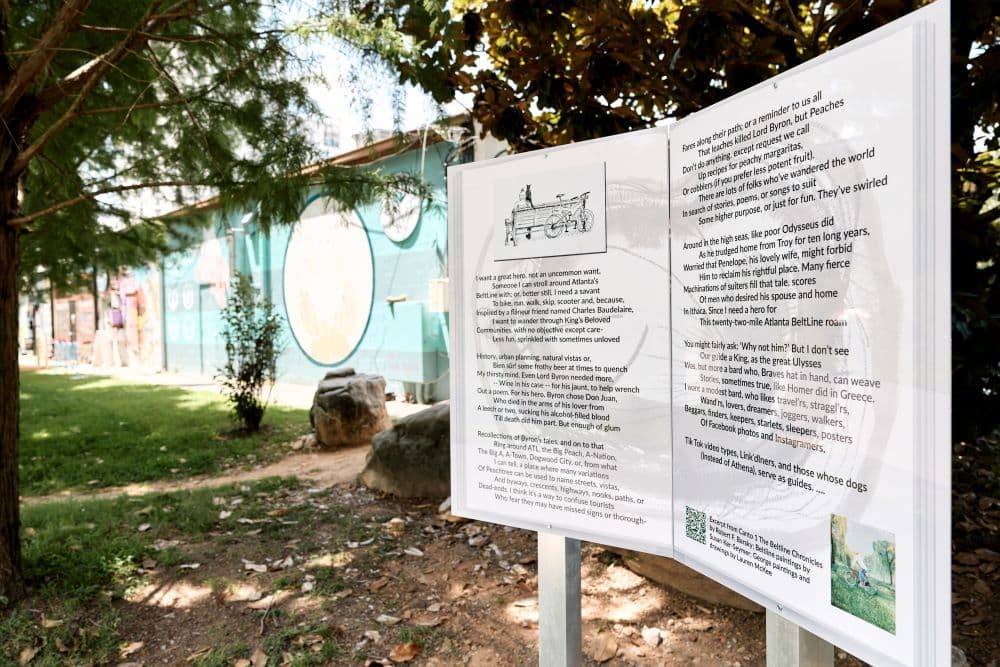 “The Beltline Chronicles” is a 68-page poem celebrating Atlanta’s history along its namesake trail. Inspired by literary classics like “Don Juan” and “Paradise,” it weaves tales of exploration and cultural richness. Complemented by original artworks, it’s not just a poem but a visual journey. Through performances and installations, it adds to the ongoing narrative of the Beltline’s evolution.