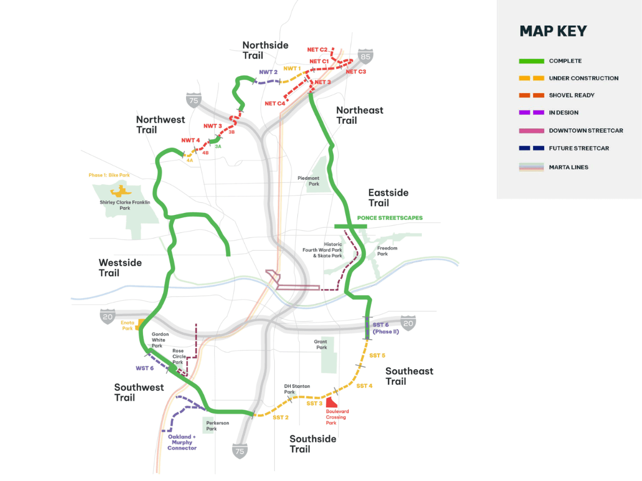 The Atlanta Beltline is a dynamic urban redevelopment project encompassing various ongoing initiatives. Each project contributes to the overarching goal of transforming Atlanta into a more livable, connected, and sustainable city through innovative urban planning and community-driven initiatives. Here is a listing of all active projects.