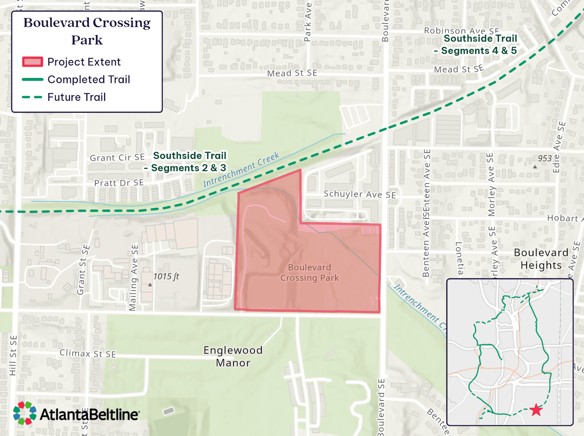 Design work is complete for an expansion of the existing park from 5 acres to 25 acres, including a direct access path to the Southside Trail.