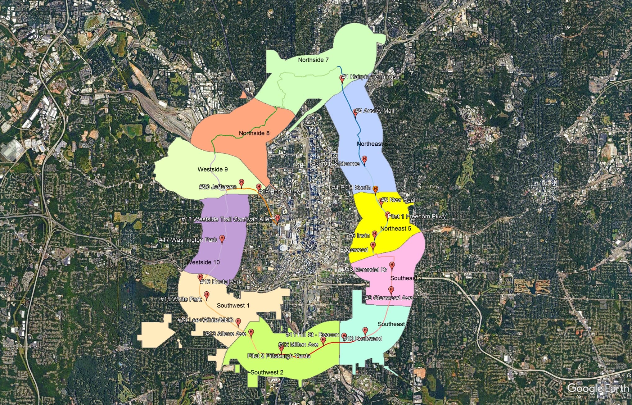 As the Beltline brings enhances mobility through infrastructure, this Smart Cities project includes installing 22 smart hubs of technology across the 18 miles of open Beltline trail. These sites will all include public Wi-Fi access zones and a digital wayfinding kiosk.