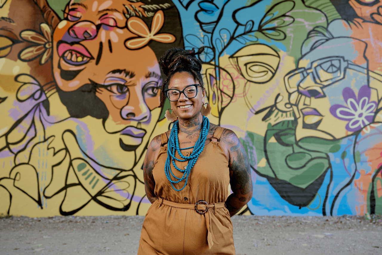 “How we grew together” is a reflection of multidisciplinary artist Charity Hamidullah's time experiencing the Beltline and the community of Atlanta. She believes we are connected not only by this space but this city — together amongst beautiful differences. Charity has been living and creating in Atlanta since 2011. Her work began as a tattoo artist where she assisted in helping clients honor their identity through body adornment. Her admiration for community soon transformed her canvas with hopes to inspire and uplift more individuals. Hamidullah utilizes color and figurative and environmental elements to illustrate stories of identity, empowerment, and growth while uniting spaces with the love language of art.Aziza Andre’s “RENASCENT” (Images)