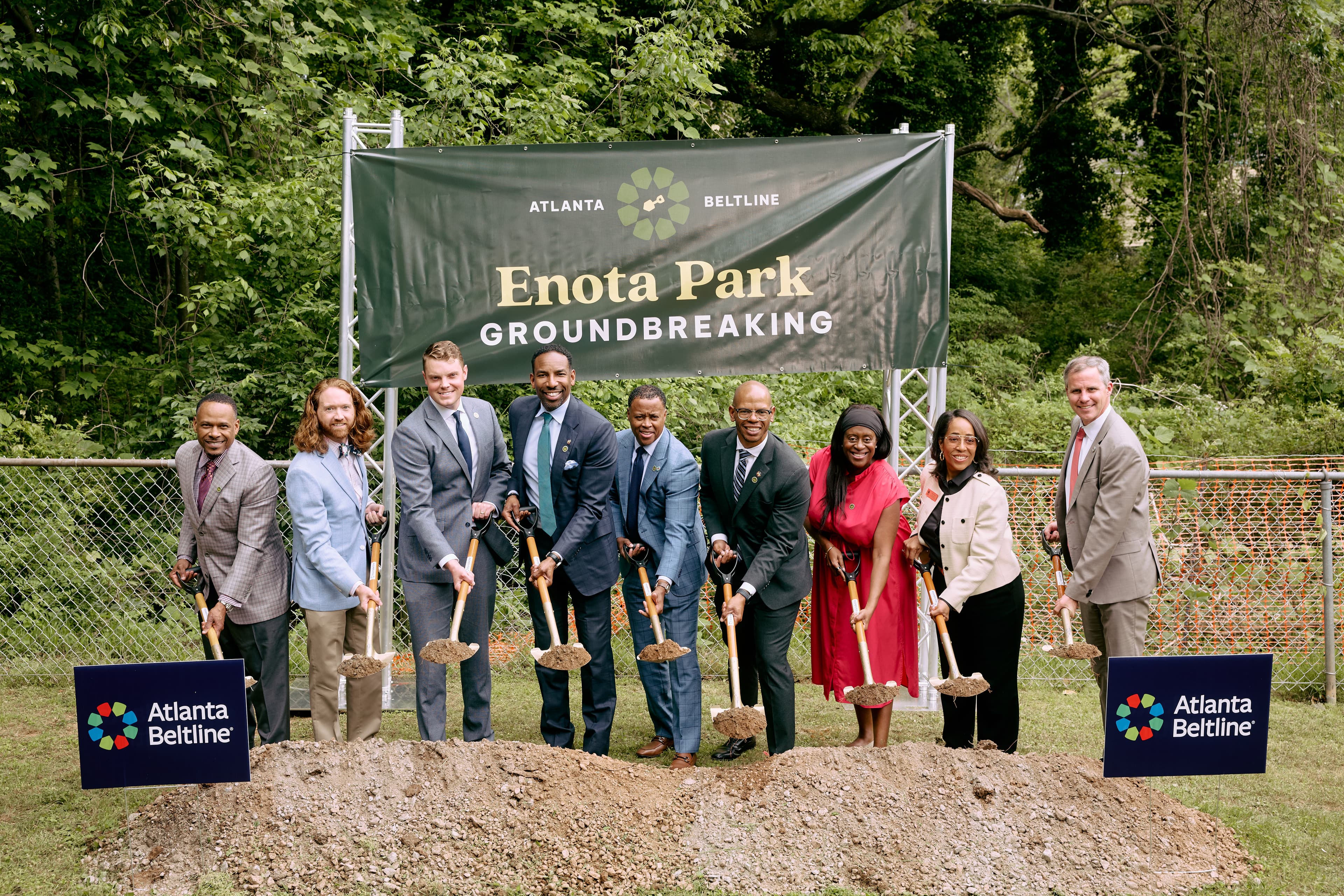 Atlanta Mayor Dickens, Atlanta Beltline, Inc. President and CEO Clyde Higgs, state officials, and other community leaders broke ground today on the expansion of Enota Park, which will be a dramatic transformation of the existing 0.3-acre playlot into an 8-acre recreational destination. This community-driven project will serve as a gateway to the historic Westview neighborhood and connect to the West End along the Atlanta Beltline Westside and Southwest Trails.
